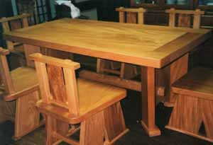 全てケヤキ材で作られたキッチンテーブルと椅子です。 |